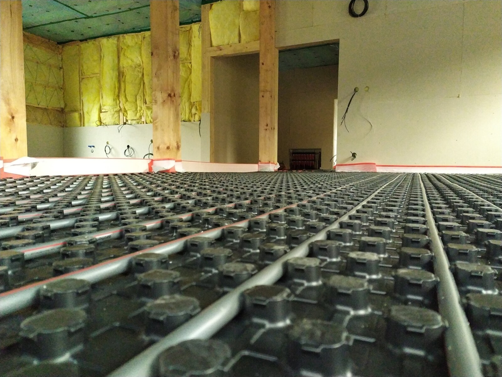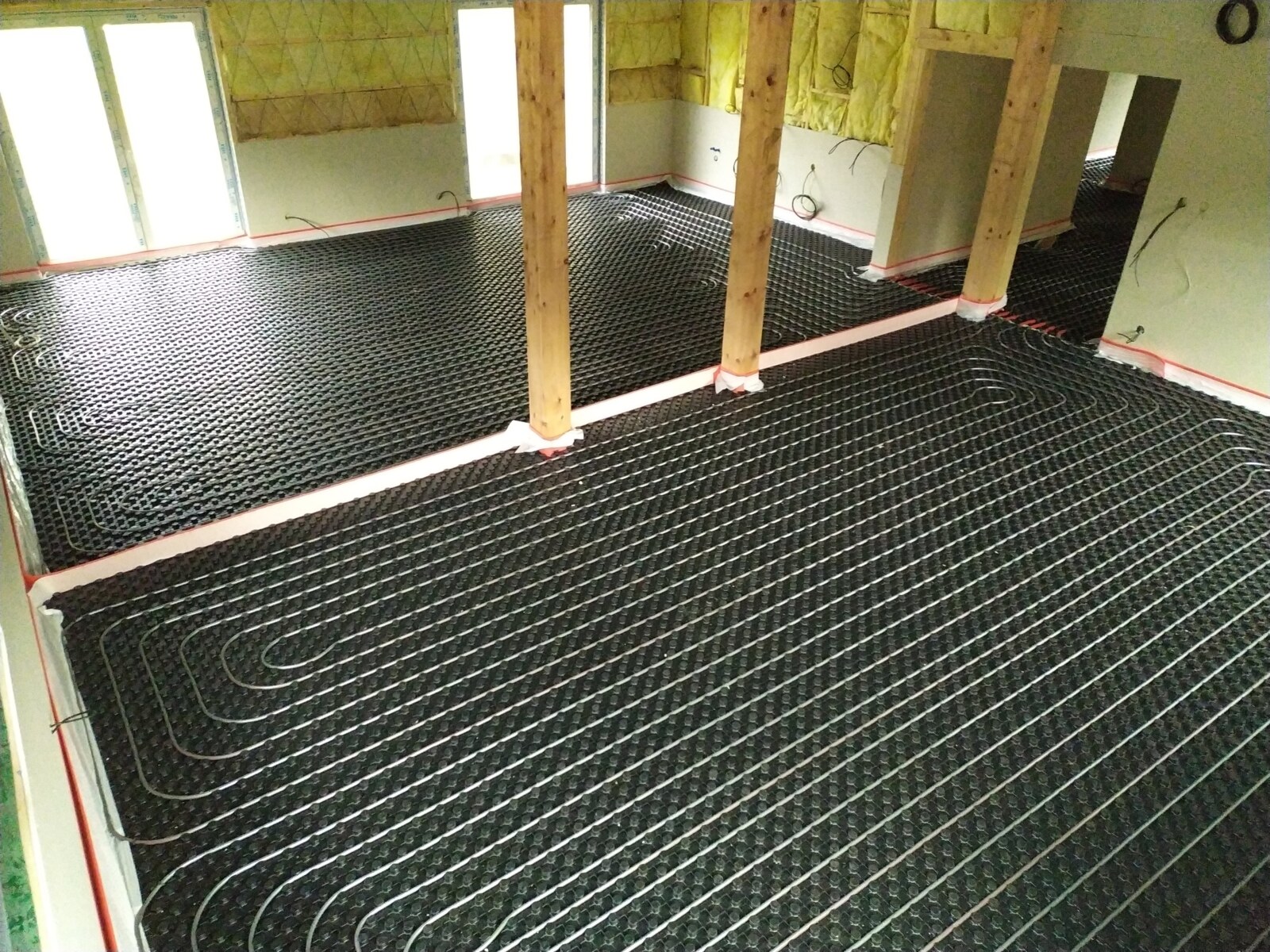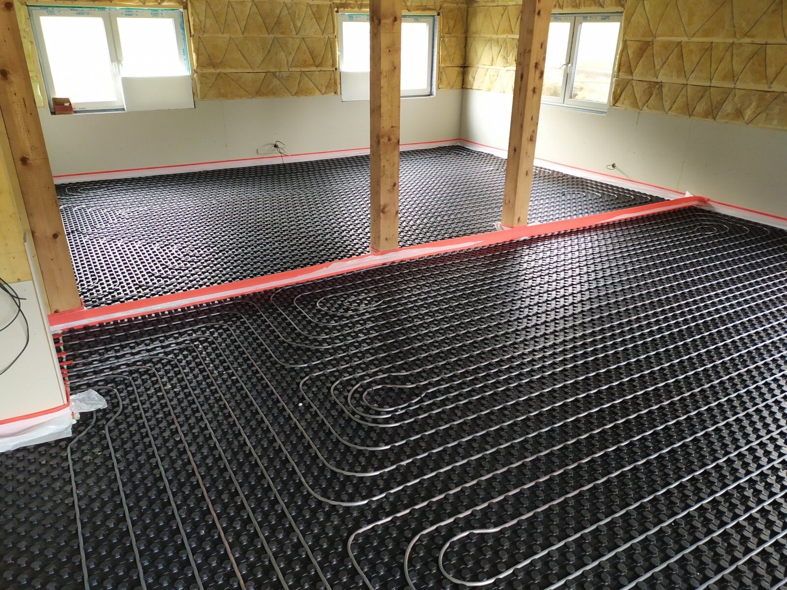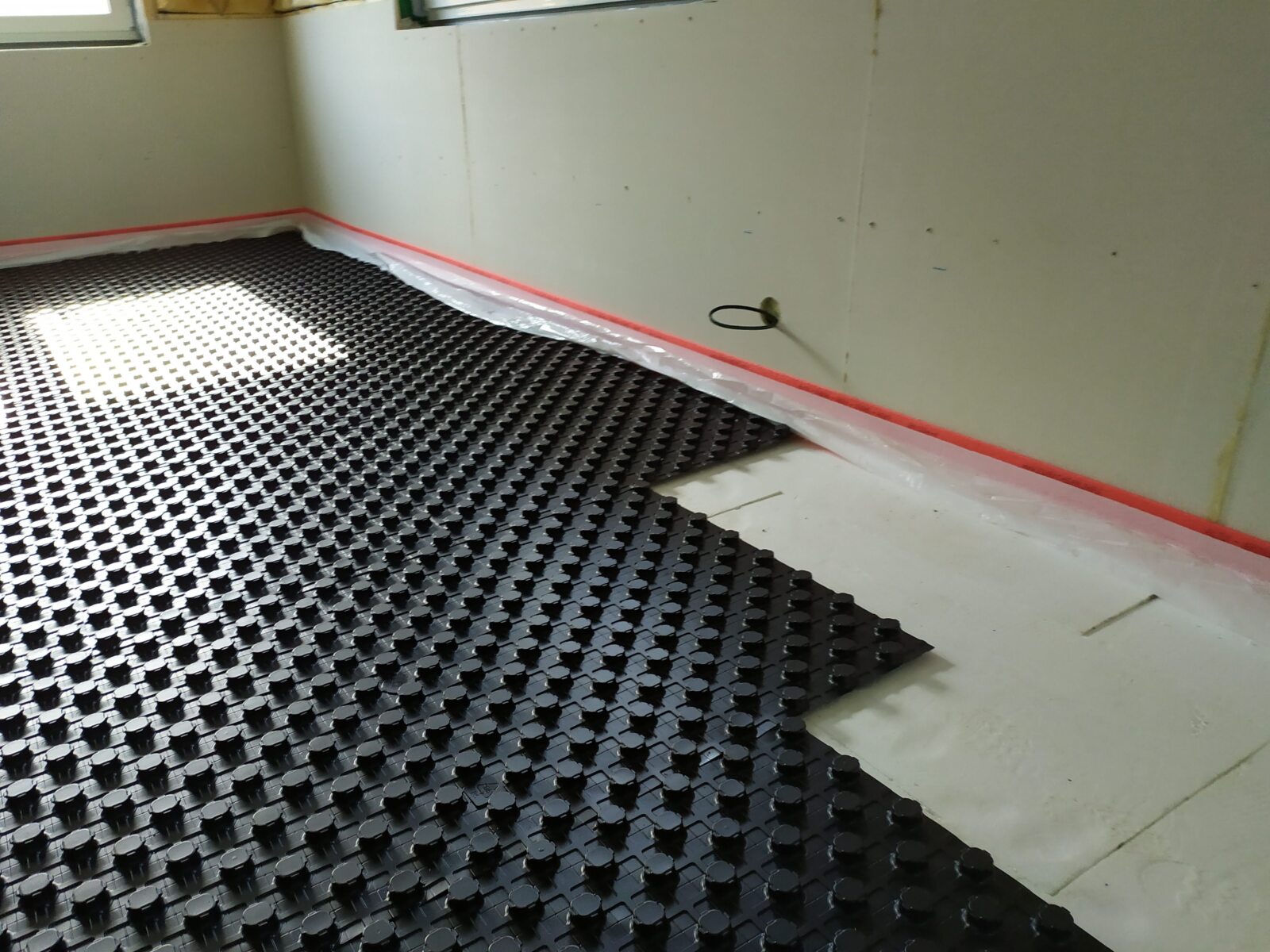 Na celkové ploše 300 m² byla použita systémová deska Euroflex TF 10 / 31,5 mm s tloušťkou tepelné izolace 10 mm a celkovou konstrukční výškou 31,5 mm. Systémová deska je překryta krycí PE fólií o